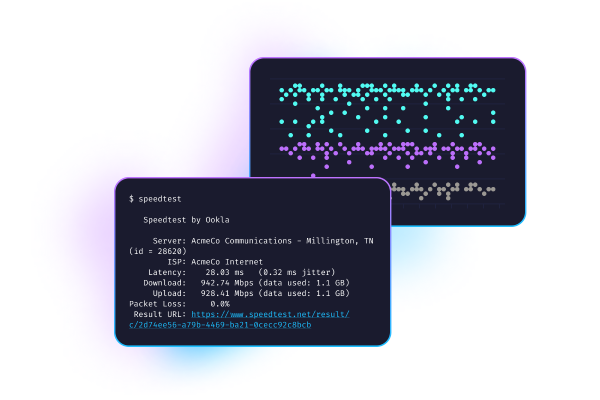 Speedtest CLI trae la tecnología de confianza y la red de servidores globales detrás de Speedtest a la línea de comando. Diseñado para desarrolladores de software, administradores de sistemas y entusiastas informáticos por igual, Speedtest CLI es la primera aplicación oficial de Speedtest nativa de Linux y respaldada por Ookla®
